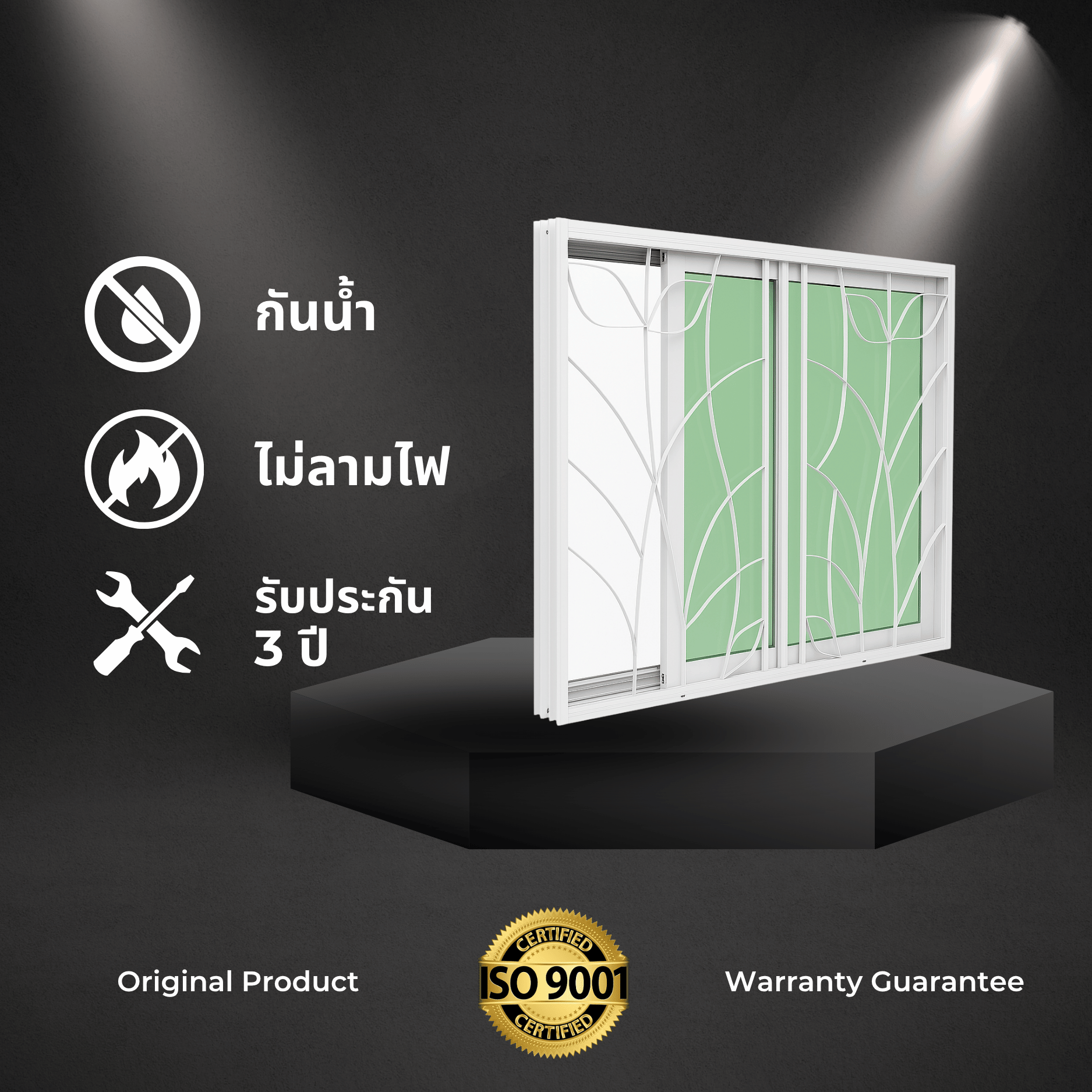Categories : Sliding Door With Wrought Iron ,  บานเลื่อนอลูมิเนียมพร้อมเหล็กดัดสำเร็จรูป ,  ประตูอลูมิเนียมบานเลื่อนเหล็กดัดสีขาว 200x205 ,