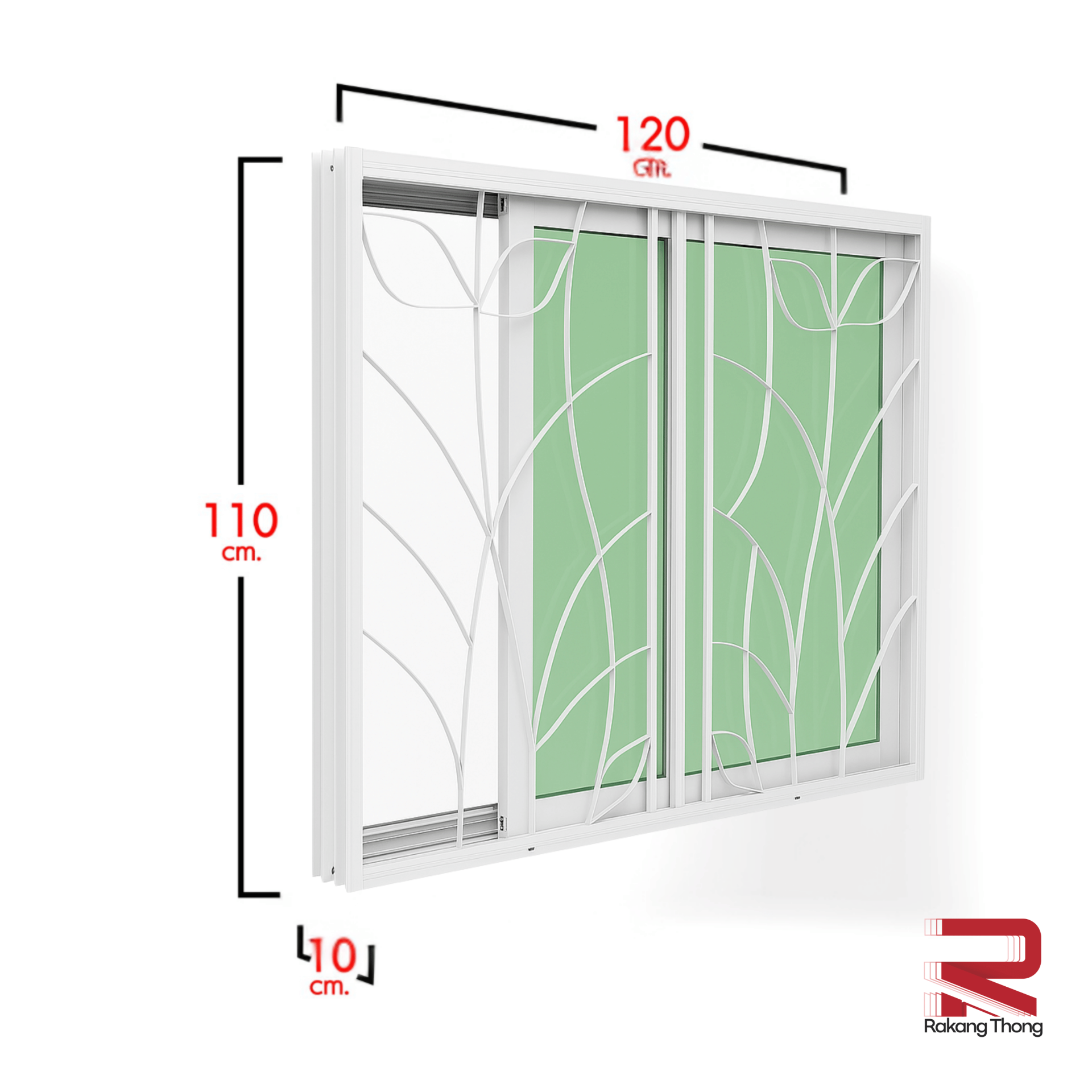 ขนาด 120x110 CM. ผลิตจากอลูมิเนียม เกรด A แข็งแรงทนทาน รับประกันไม่เกิดสนิมตลอดอายุการใช้งาน กระจกสีเขียวใสตัดแสง ป้องกันความร้อนและรังสี UV